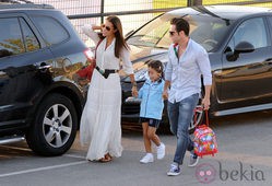El cantante David Bustamante y la actriz Paula Echevarría con su hija Daniella en el colegio