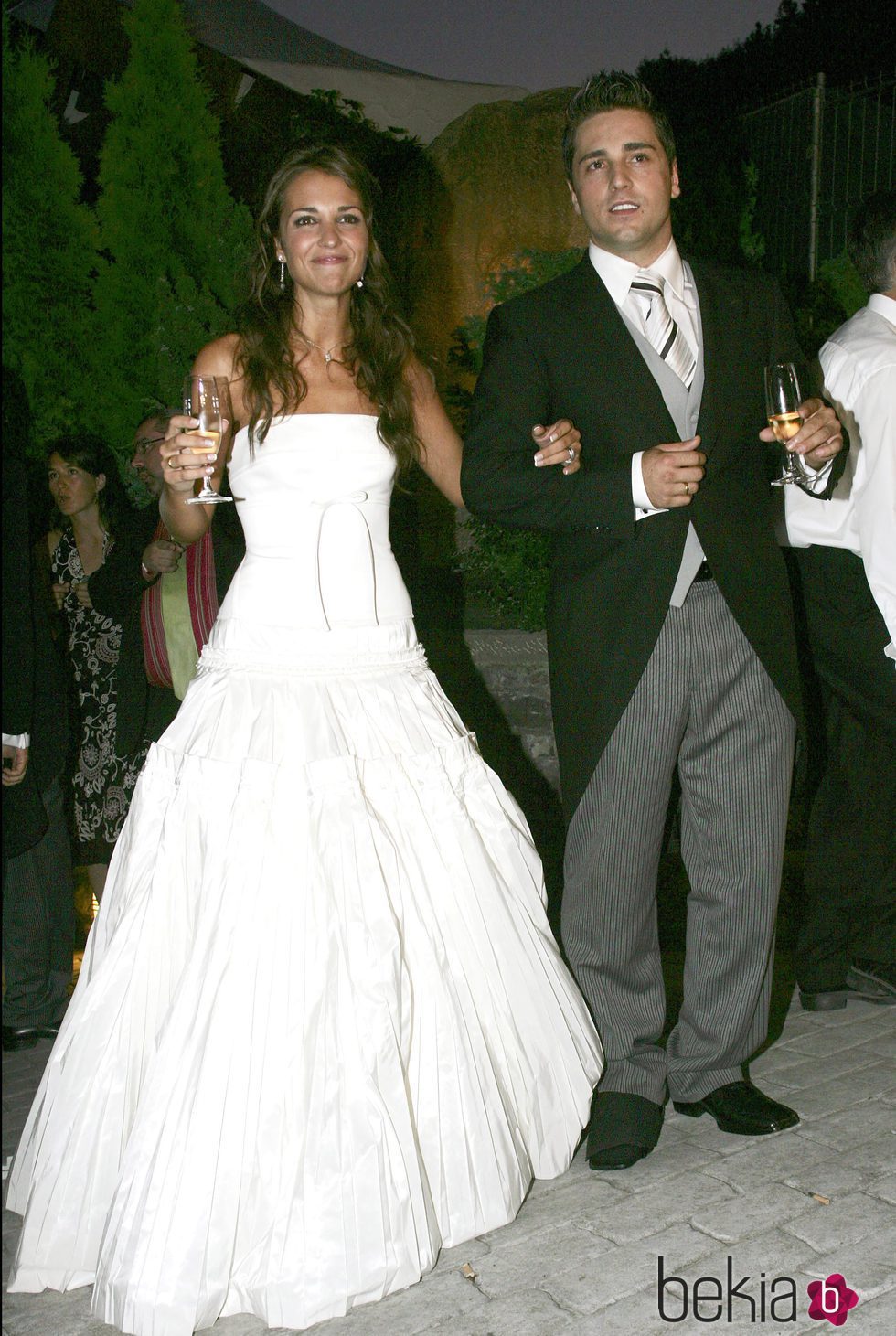 La actriz Paula Echevarría y el cantante David Bustamante en el brindis celebrado con motivo de su boda el 22 de julio de 2006.