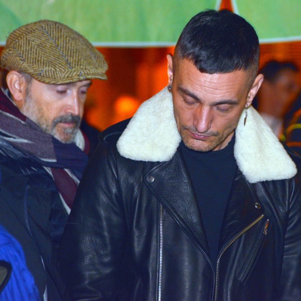 El actor Javier Cámara y el diseñador David Delfín en el entierro de Dunia Ayaso en Las Palmas de Gran Canaria.