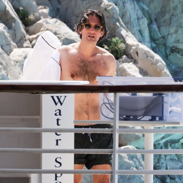 El productor Dimitri Rassam con el torso desnudo en bañador en un hotel de Antibes, en la Costa Azul francesa.