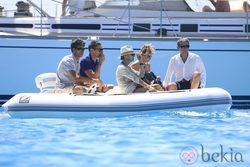 Eugenia Martinez de Irujo a bordo de una lancha con unos amigos en Ibiza.