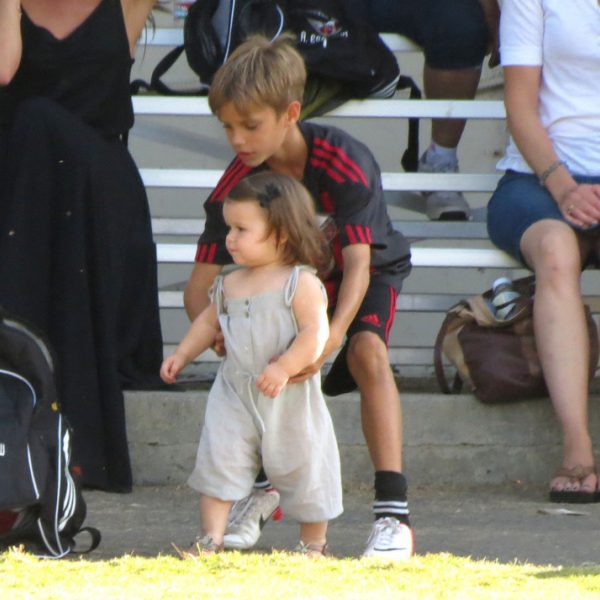 Romeo Beckham jugando con su hermana pequeña Harper Seven