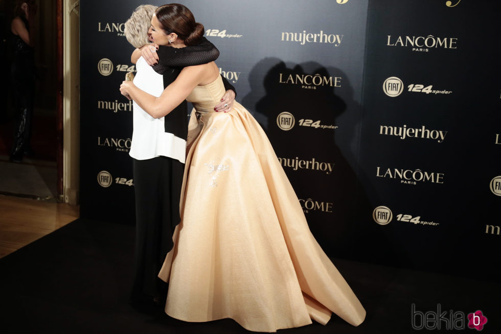 La actriz Paula Echevarría y Concha Velasco abrazándose en la alfombra roja a su llegada a la entrega de los Premios Mujer Hoy 2017