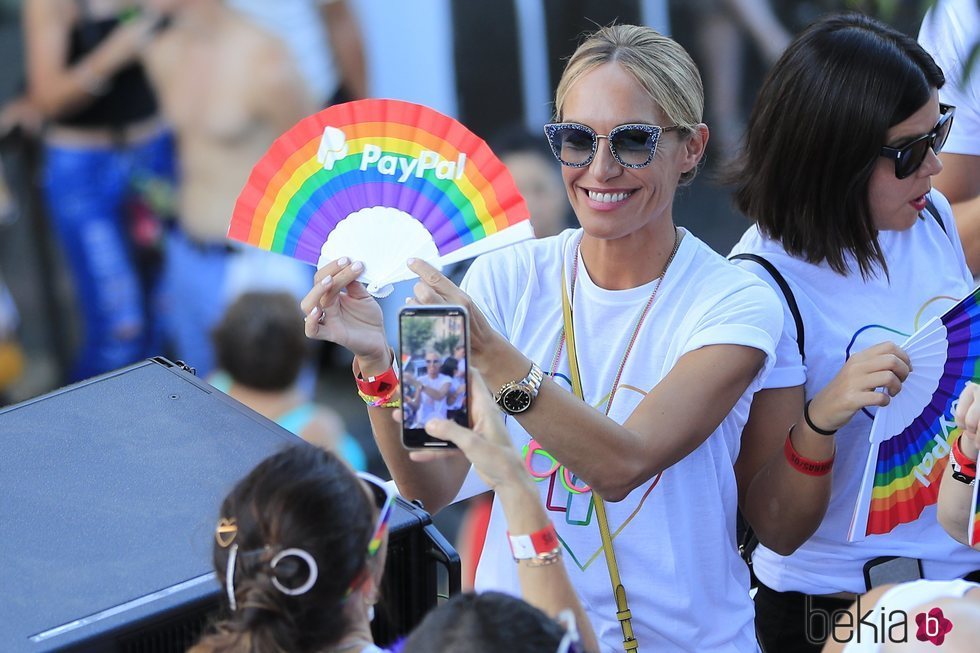 La presentadora Luján Argüelles en una de las carrozas que recorrió Madrid con motivo del desfile del Orgullo 2019.