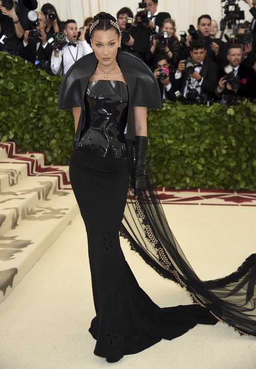 La modelo Bella Hadid ha sido una de las personas que ha posado en la alfombra roja de la Gala MET 2018 con temática religiosa en los look.