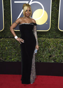 La cantante y actriz Mary J. Blige en la alfombra roja de los premios Globos de Oro 2018 celebrada en la ciudad de Los Angeles.
