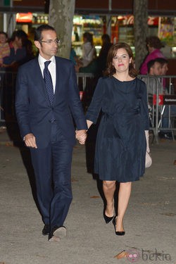 La vicepresidenta Soraya Sáenz de Santamaría y su marido Iván Rosa Vallejo durante la boda de Pablo Lara y Anna Brufau en Barcelona.