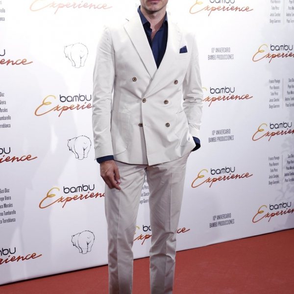 El actor y modelo Andrés Velencoso posando en el photocall a su llegada a la fiesta organizada por el décimo aniversario de la productora Bambú.