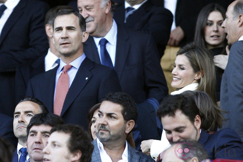 Los Príncipes de Asturias en el partido de Champions entre el Atlético de Madrid y el Chelsea en el estadio Vicente Calderón.
