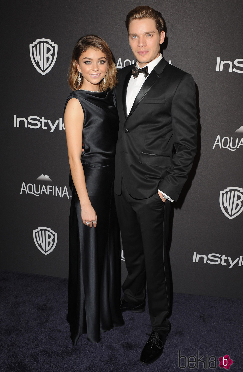 La pareja de actores formada por Sarah Hyland y Dominic Sherwood en la fiesta de InStyle tras la entrega de los Globos de Oro 2016