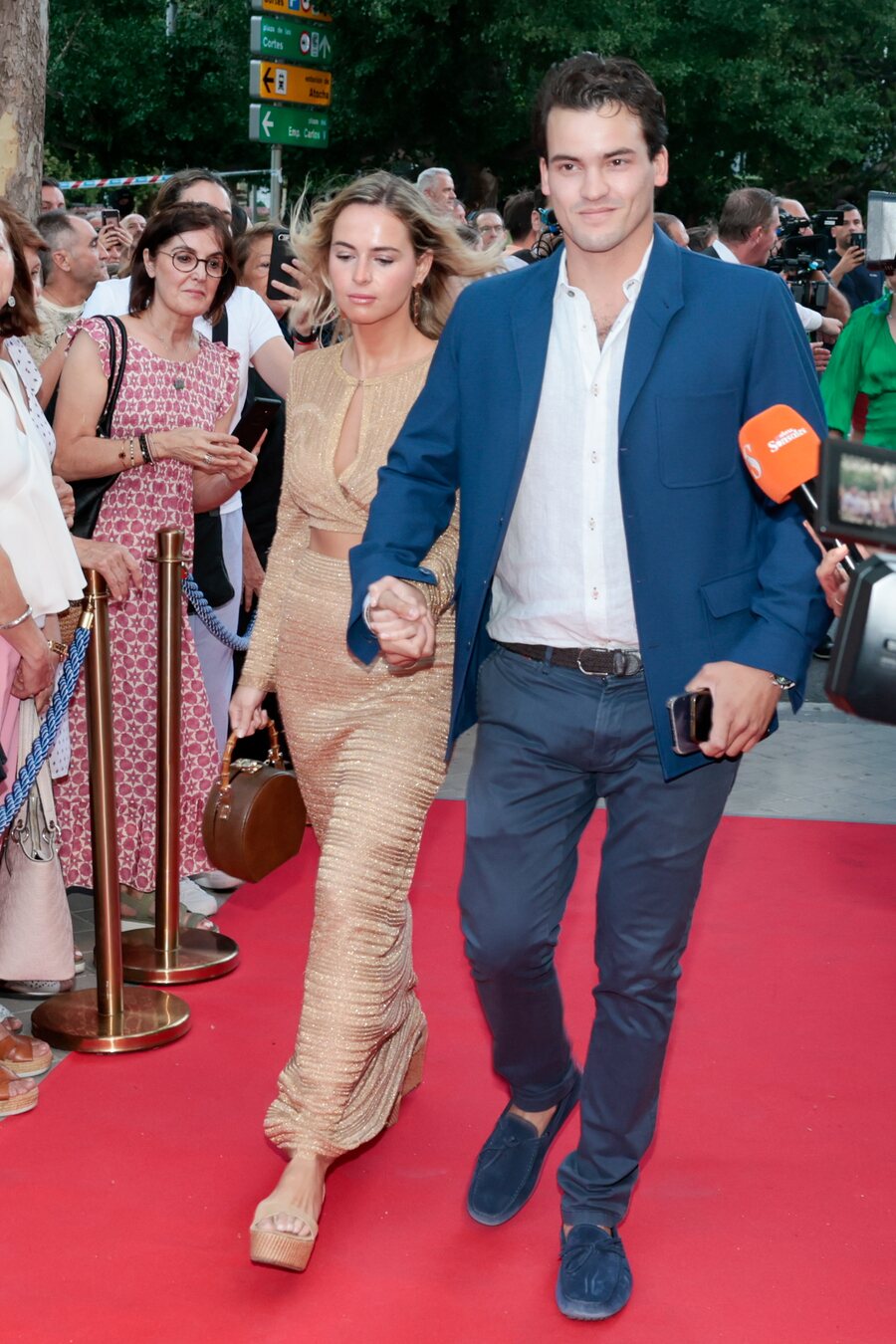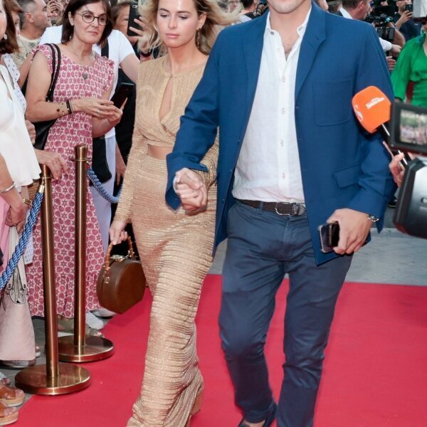El hermano de Íñigo Onieva y su pareja en la fiesta previa a la boda de Tamara Falcó e Íñigo Onieva que se celebró en el Hotel Ritz de Madrid.