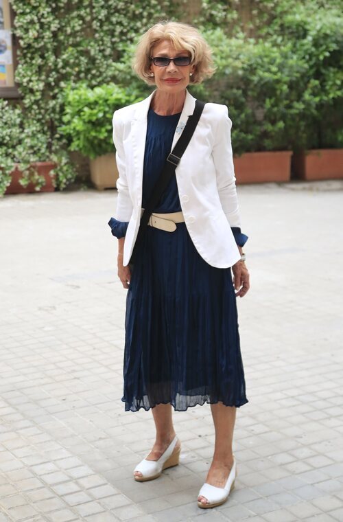 Rosa Valenty es fotografiada llegando al funeral que se ha organizado en memoria del periodista Jesús Mariñas.