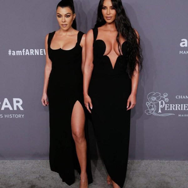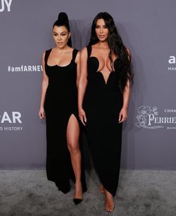 Las hermanas, Kourtney y Kim Kardashian, en el photocall de la gala benéfica amFAR 2019 celebrada en Nueva York.