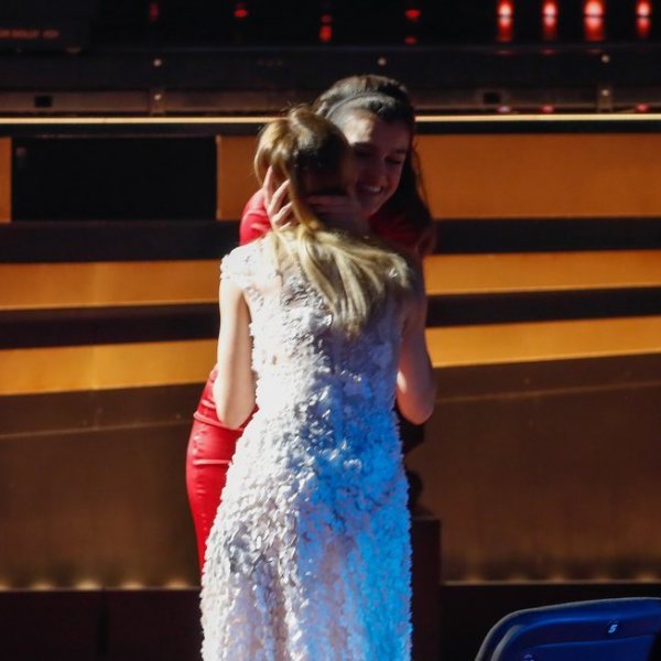 La cantante Amaia Romero besa a la actriz María Esteve en el homenaje a Marisol en la gala de los Premios Goya 2020.