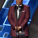 La actriz Viola Davis entre a Peter Dinklage su Premio Emmy 2015 por su papel en 'Juego de Tronos'.