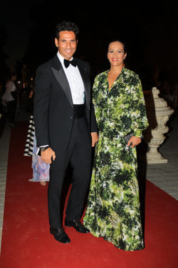 El torero Óscar Higares y su mujer Sandra Álvarez posan sonrientes durante la X Edicion de los Premios Escaparate en Sevilla
