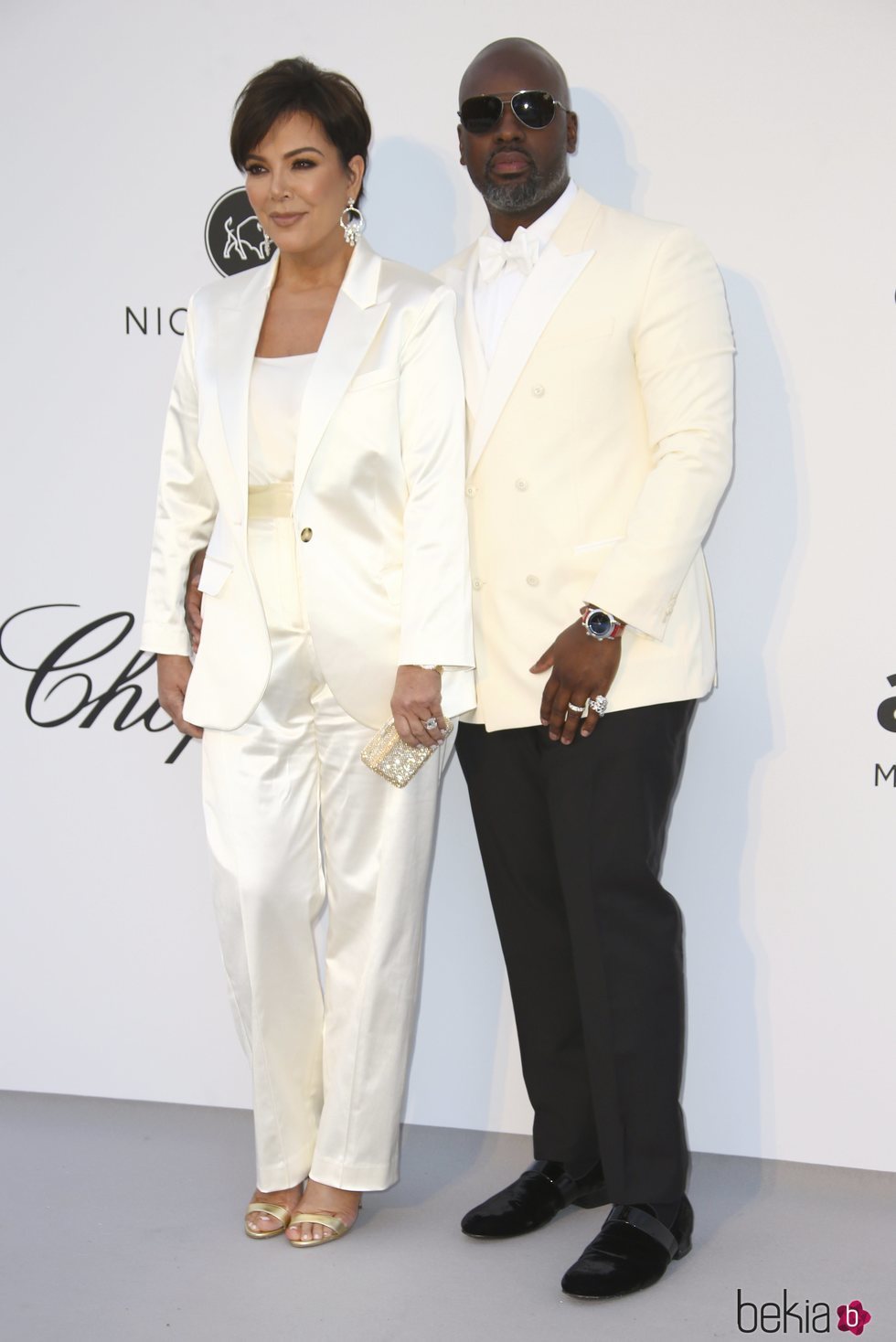 Kris Jenner y Corey Gamble en la alfombra roja de la Gala amfAR Cine Against AIDS durante el Festival Internacional de Cine de Cannes 2019.