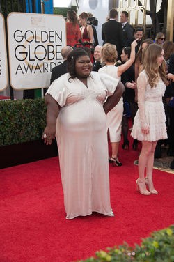 La actriz Gabourey Sidibe en la alfombra roja de los Globos de Oro 2014