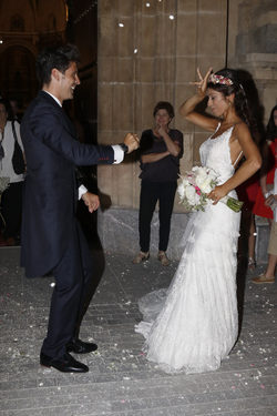 Los novios Guillermo Martín y Lidia Reyes bailando a la salida de su boda en Córdoba el 25 de junio de 2016.