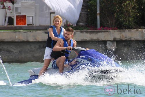 La cantante Shakira y el futbolista Gerard Piqué en moto de agua durante sus vacaciones en Miami