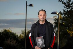 El cómico Ángel Martín posando con su libro 'Detrás del ruido', obra publicada dos años después de 'Por si las voces vuelven'.