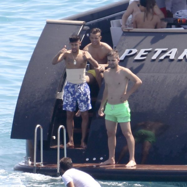 El futbolista Neymar junto a sus amigos a bordo del barco Petardo durante sus vacaciones en Ibiza.