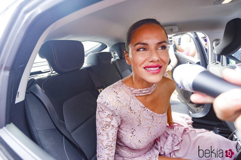 Mónica Hoyos es fotografiada llegando el coche de lo más elegante a la boda de Isa Pantoja y Asraf Beno en Sevilla.