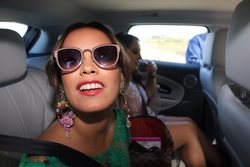 Gloria Camila es fotografiada dentro del coche llegando a la boda de su padre José Ortega Cano con Ana María Aldón.