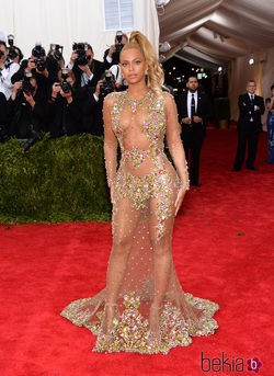 La cantante Beyoncé en la alfombra roja de la Gala del Met 2015, celebrada en la ciudad de Nueva York.