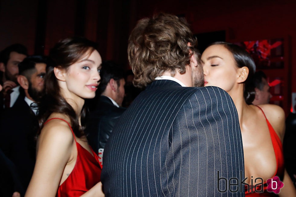 El actor Bradley Cooper y su novia la modelo Irina Shayk besándose en la fiesta L'Oreal Paris Red Obsession