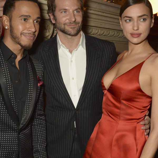 El piloto Lewis Hamilton, el actor Bradley Cooper y la modelo Irina Shayk en la fiesta L'Oreal Paris Red Obsession