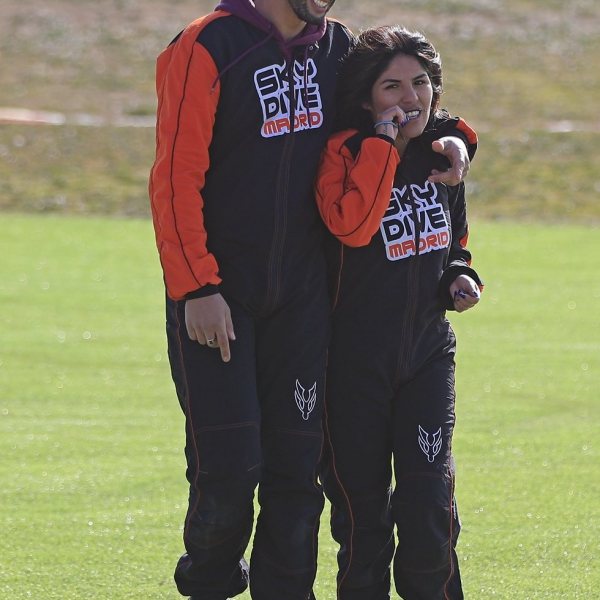 Chabelita Pantoja y Asraf Beno charlan animadamente y con mucho cariño durante su día de aventuras en el que saltaron en paracaídas.