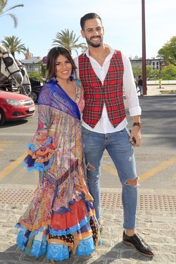 Chabelita Pantoja posando con su pareja Asraf Beno a su llegada a la Maestranza de Sevilla para ver una corrida de toros de la Feria de Abril 2019.