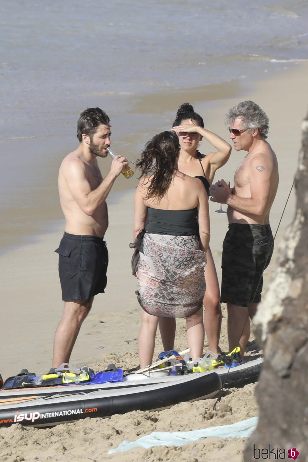 El actor Jake Gyllenhaal disfrutando del día de Año Nuevo en las playas de San Bartolomé junto al cantante Jon Bon Jovi.