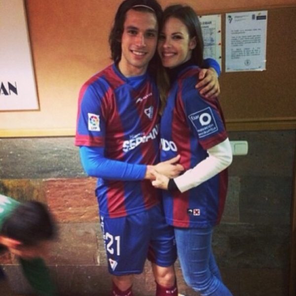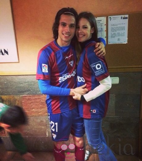 La modelo Jessica Bueno y su novio el futbolista Jota Peleteiro celebran el ascenso del Eibar a Primera División