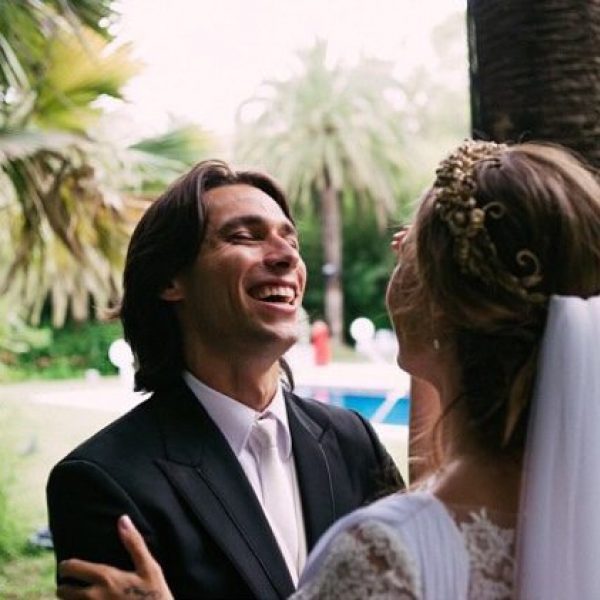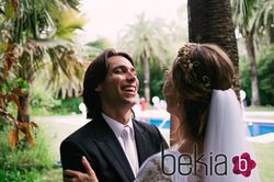 La modelo Jessica Bueno y el futbolista Jota Peleteiro riéndose el día de su boda