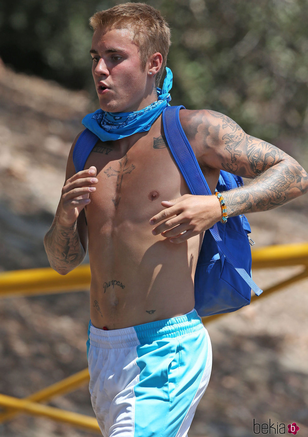 El cantante Justin Bieber sudoroso durante una jornada de deporte donde se dedicó a correr de un lado para otro.