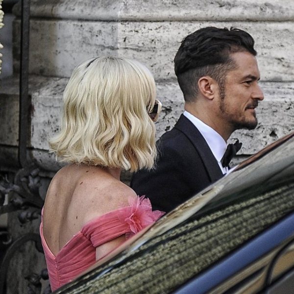 La pareja formada por la cantante Katy Perry y el actor Orlando Bloom en la boda de Misha Nonoo y Michael Hess en Roma.