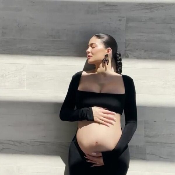 Kylie Jenner presumiendo de barriga de embarazada durante el vídeo que compartió en sus redes sociales para anunciar que estaba esperando su segundo hijo junto a Travis Scott.