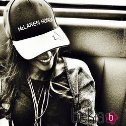 La presentadora Lara Álvarez con una gorra de la escudería McLaren Honda de Fernando Alonso.