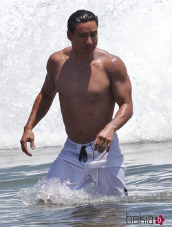 Mario Lopez se refresca en el mar durante unas vacaciones en familia