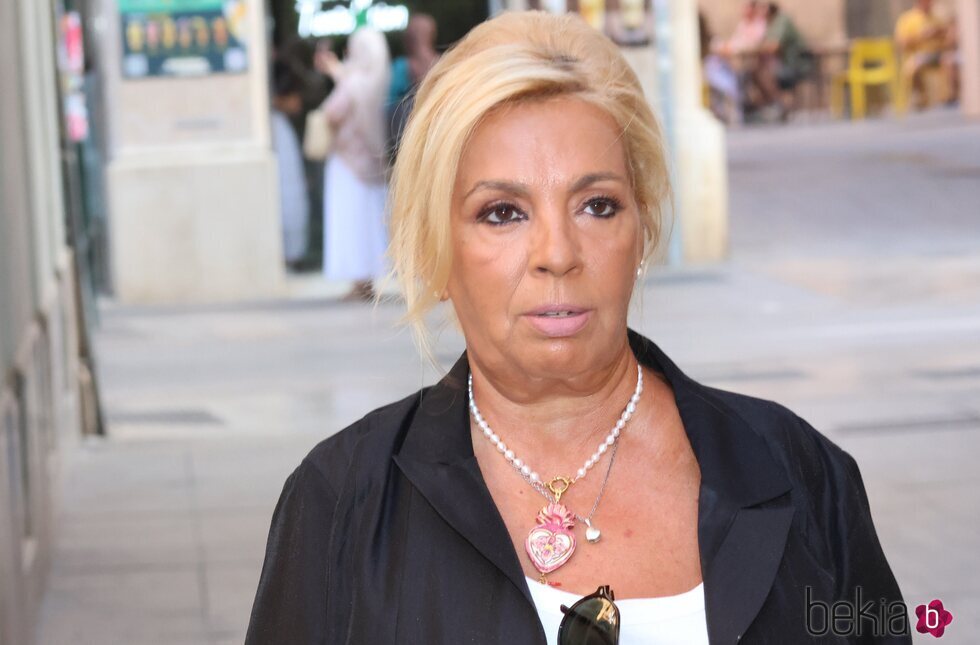 Carmen Borrego es fotografiada en la misa por el aniversario de la muerte de María Teresa Campos celebrada en Málaga.