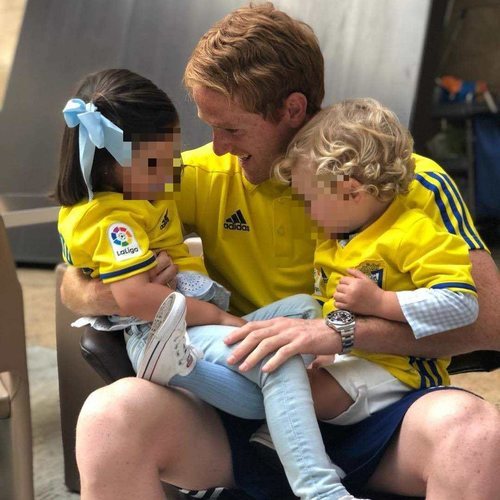 El jugador del Cádiz Álex Fernández con sus sobrinos, Alejandra y José Ignacio, los hijos de su hermano Álex Fernández, jugador del Real Madrid.
