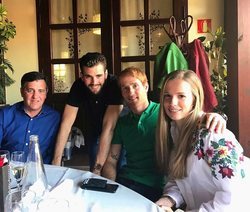 Los hermanos Nacho Fernández, jugador del Real Madrid; y Álex Fernandez, jugador del Cádiz; en una reunión familiar con su padre José María y su hermana Maite