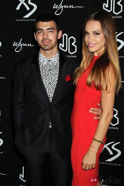 El cantante Joe Jonas y su novia la modelo Blanda Eggenschwiler en la fiesta del 21 cumpleaños de Nick Jonas en Las Vegas