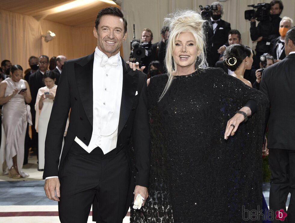 Hugh Jackman es fotografiado posando junto a su mujer Deborra-Lee Furness en la alfombra roja de la MET Gala 2022.