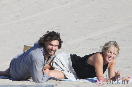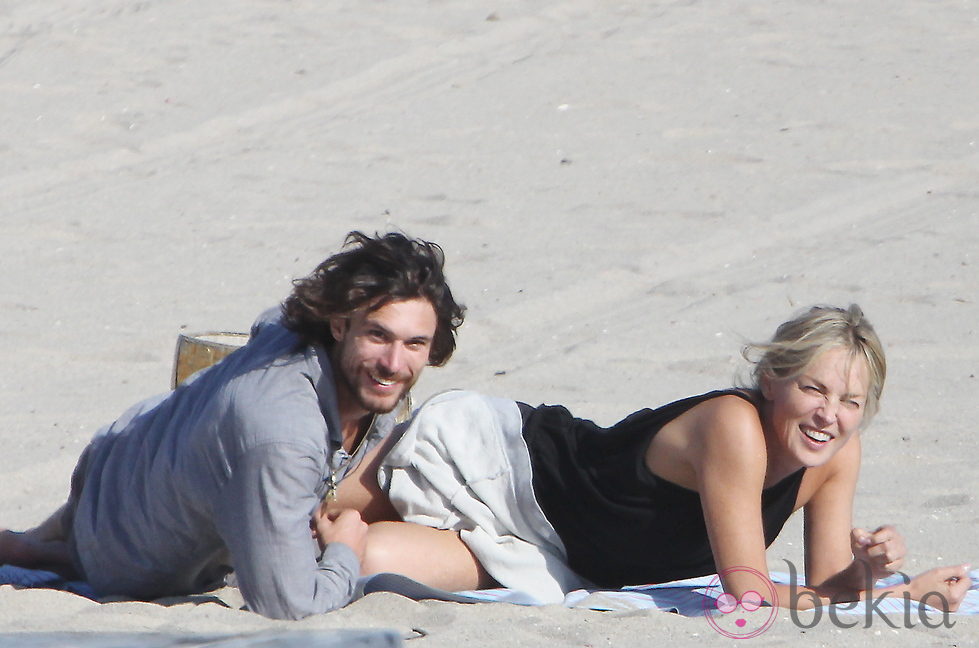 La actriz Sharon Stone y su novio Martin Mica en la playa de Venice.