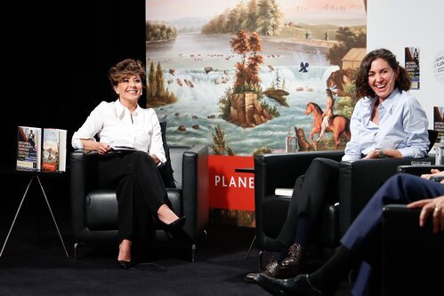 La presentadora Sonsoles Ónega y la escritora Cristina Campos en la presentación de las novelas ganadora y finalista del Premio Planeta 2022