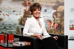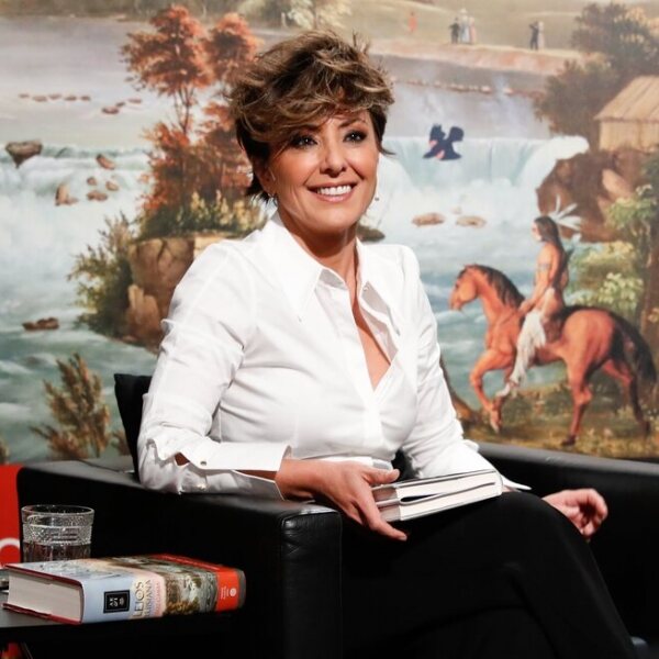 La presentadora Sonsoles Ónega, muy sonriente en la presentación de las novelas ganadora y finalista del Premio Planeta 2022.