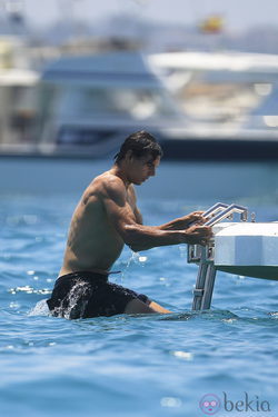 Rafa Nadal subiendo la escalerilla para acceder al barco en Ibiza.